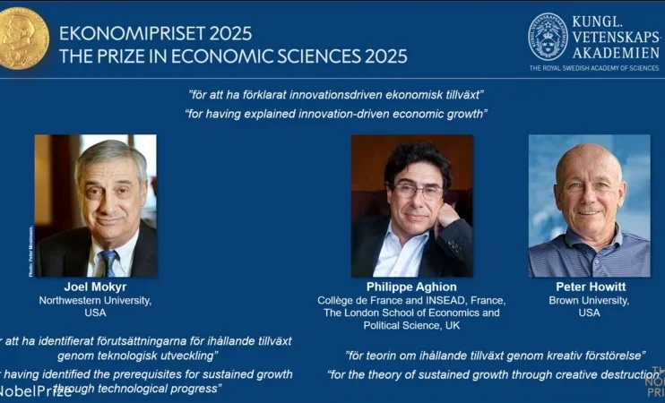 Şwesiýanyň Korollyk ylymlar akademiýasy 2025-nji ýylyň Ykdysadyýet boýunça Nobel baýragyny innowasiýa we tehnologiki ösüşiň jemgyýetleriň baýlaşmagyna nähili kömek edýändigini düşündiren alymlar Joel Mokyra, Filipp Agiona we Piter Howitte berdi.