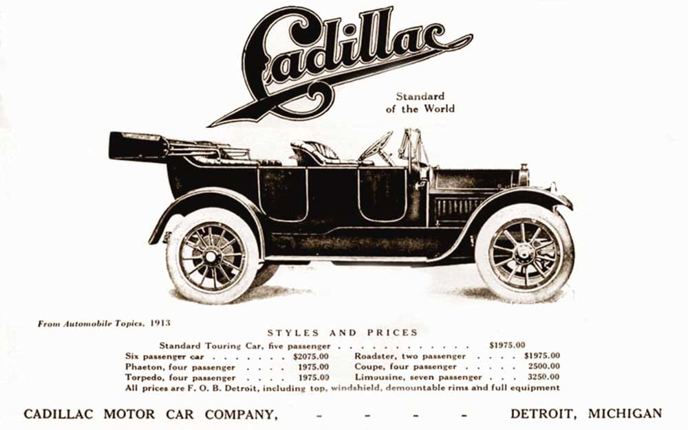 Suratda: 1913-nji ýylda «Cadillac» awtoulagynyň bahalaryny görkezýän gazetde çykan bildiriş.