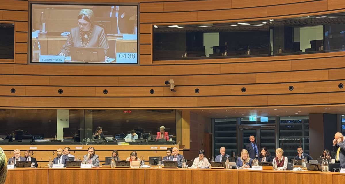 Sessiýada çykyş etmek bilen, M.Bäşimowa Türkmenistanyň Ýewropa Bileleşigi bilen ynanyşmaga, hormata we deňhukuklylyga esaslanýan özara bähbitli hyzmatdaşlygy has-da ösdürmäge maksat edinýändigini tassyklady. Türkmen tarapy öz hyzmatdaşlygyň ileri tutýan ugurlaryny, ýagny häzirki zaman we durnukly ulag infrastrukturasyny ösdürmek (Hazarüsti geçelgesine aýratyn ähmiýet bermek bilen); ÝB bilen energetika taýdan arabaglanyşygy giňeltmek, şol sanda SECCA maksatnamasyna goldaw bermek; gaýtadan dikeldilýän energiýa çeşmeleri we wodorod tehnologiýalary babatynda hyzmatdaşlyk; şeýle hem “ýaşyl” gün tertibini ilerletmek – Çölleşmä garşy göreşmek boýunça sebitleýin merkezi, Howanyň üýtgemegi bilen bagly tehnologiýalar boýunça sebit merkezini döretmek başlangyçlary hem-de Hazar ekologiýa başlangyjyny ösdürmek ýaly ugurlary beýan etdi.