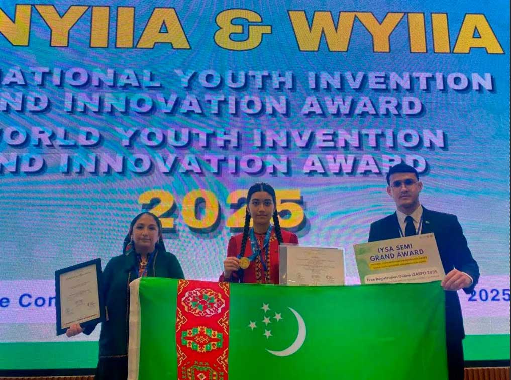 Gadyr Orazberdyev and Selbi Kerimkulyeva, students from the Oguz Khan University of Engineering and Technology of Turkmenistan, under the guidance of instructor Ogulnur Rozyeva, successfully competed in the international competition “World Youth Invention and Innovation Award (WYIIA 2025)” in Surabaya, Indonesia, from October 14 to 17, as reported by the turkmenistan.gv. tm.