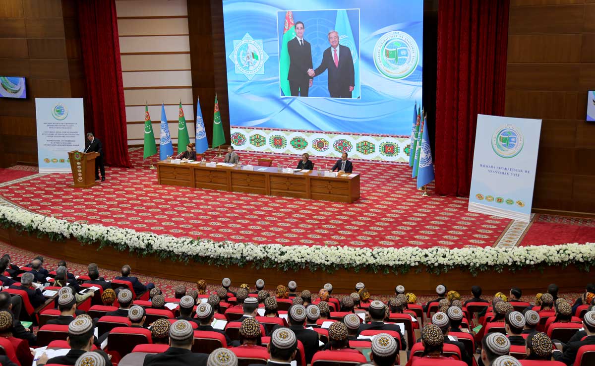 Ýubileý ýylyň çygrynda Türkmenistanyň BMG bilen üstünlikli hyzmatdaşlygynyň mysallary getirildi. Olaryň hatarynda «Awaza» milli syýahatçylyk zolagynda geçirilen BMG-niň Deňze çykalgasy bolmadyk ösüp barýan döwletler boýunça üçünji maslahatynyň ähmiýeti aýratyn bellenildi.