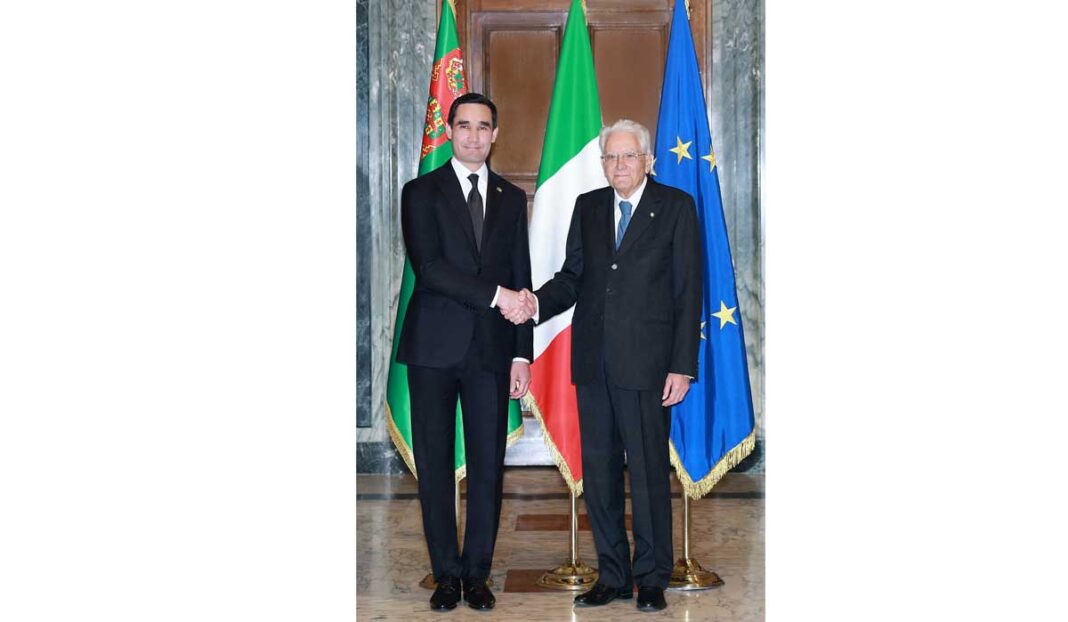 Prezident Serjio Mattarella belent mertebeli myhmany mähirli mübärekläp, Türkmenistan bilen özara hormat goýmak ýörelgelerine esaslanýan netijeli hyzmatdaşlyga Italiýada ýokary baha berilýändigini belledi.