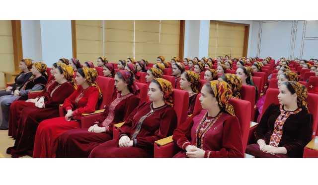 В Министерстве связи Туркменистана прошла важная встреча, организованная Центральным советом Союза женщин Туркменистана, под названием «Ösüşlere beslenen parahat, asuda Watanyň buýsançly zenanlary».