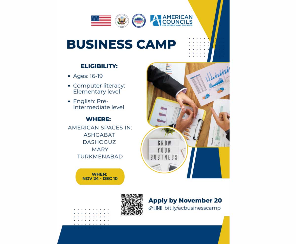 American councils in Turkmenistan announce the vacancy of Business camp project Trainer for one month. Interested sides can apply until the 12 November, at 20:00. This is a temporary part-time position for the period of November 15 until December 15, 2025 (tentative).