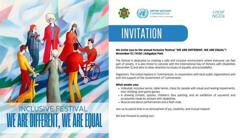 The annual inclusive festival “We Are Different, We Are Equal!” will take place in Ashgabat Park.