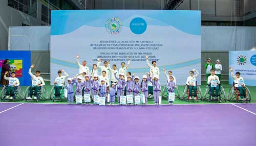 The program featured performances by children from the Gurbanguly Berdimuhamedov Children’s Health and Rehabilitation Center Gurbanguly Berdimuhamedov, a tennis tournament among children with and without disability, and a ceremony recognizing children’s participation.