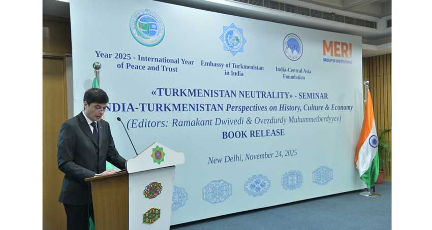24-nji noýabrda Nýu-Deli şäherindäki Hindistanyň halkara merkezinde Türkmenistanyň Hindistan Respublikasyndaky Ilçihanasynyň Hindistan-Merkezi Aziýa Gaznasy bilen bilelikde gurnamagynda Türkmenistanyň hemişelik bitaraplygynyň şanly 30 ýyllygy mynasybetli seminar hem-de onuň çäginde “India-Turkmenistan: Perspectives History, Culture and Economy” atly kitabyň tanyşdyrylyş dabarasy geçirildi.