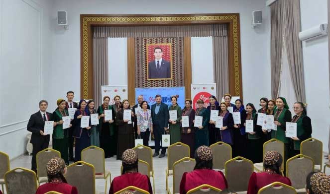 On November 22, 2025, a certificate-awarding ceremony was held for the participants in connection with the completion of the professional visit of specialists from the Naberezhnye Chelny State Pedagogical University of the Russian Federation. During the ceremony, the guests and Turkmen specialists and students exchanged views on the conducted training program. The distinguished guests from the reputable Russian higher educational institution, K.A.Kalinin and A.V. Potanina, expressed with pride that during their working visit they had the opportunity to become acquainted with the beautiful sights of Ashgabat, the splendid capital of Independent and Permanently Neutral Turkmenistan, and shared the positive impressions they had gained. The participants of the ceremony also put forward new proposals aimed at expanding cooperation between the two higher educational institutions.