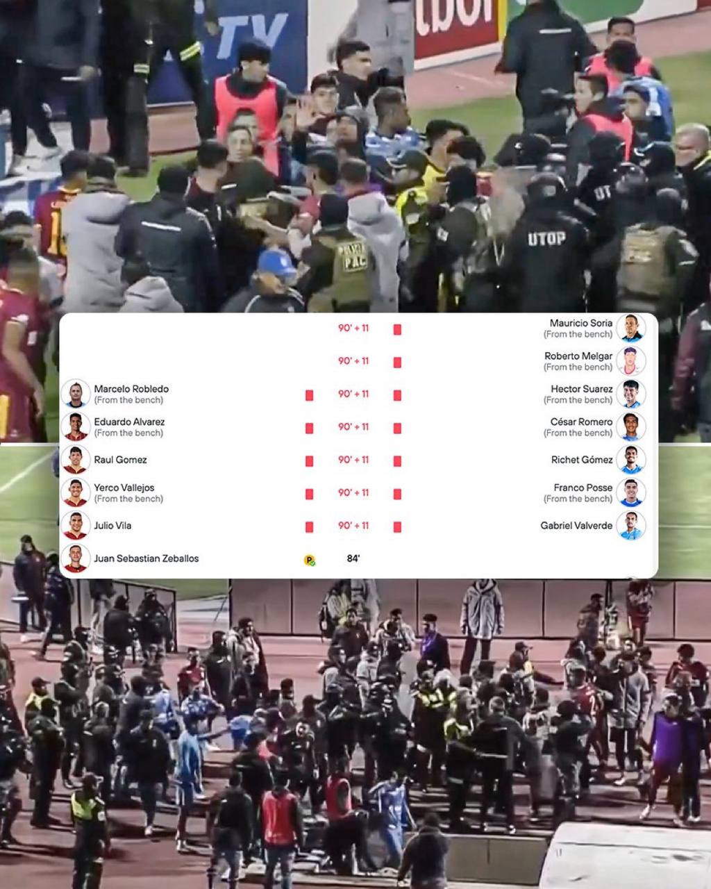 Boliwiýanyň Kubogy ýaryşynyň çärýek finalynyň jogap duşuşygynda “Real Orura” bilen “Klub Bluming” toparlary duşuşdy. Duşuşygyň esasy wagty 2-2 hasabynda tamamlandy. Ýöne esasy waka duşuşykdan soň boldy. Oýnuň ahyrynda meýdançadaky futbolçylaryň arasynda ýüze çykan ýumruklaşmany polisiýanyň kömegi bilen duruzmak başartdy. Sebastian Zebalýos (“Klub Bluming”) bilen Hulio Wilanyň (“Real Orura”) başyny başlan urşunyň netijesinde emin 17 kişä gyzyl kart berdi. Olaryň käbirleri esasy düzümde oýnan futbolçylar bolup, köpüsi ätiýaçdaky futbolçylar hem-de tälimçileriň kömekçileridir. Hatda “Oruro” toparynyň tälimçisi hem gyzyl kart alanlaryň arasynda bar. Umumylykda 7-si futbolçy 17 kişi gyzyl kart aldy. Ýumruklaşmanyň netijesinde käbir futbolçynyň ýüzüne agyr şikesleriň hem ýetendigi bellenilýär.