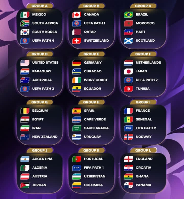 “J” toparçada soňky çempion Argentinanyň milli topary kubogy özünde saklamak islese, onda tangoçylar ilki Awstriýanyň, Alžiriň hem-de Iordaniýanyň ýygyndylaryny yzda galdyrmaly bolarlar. “K” toparçada Portugaliýanyň, Kolumbiýanyň, debýutant Özbegistanyň hem-de Yklymlararasy Pleý-off 1-iň ýeňijisi (Kongo DR / Ýamaýka – Täze Kaledoniýa) özara göreşerler. “L” toparçany bolsa Angliýanyň, Horwatiýanyň, Panamanyň hem-de Gananyň ýygyndylary düzdüler.