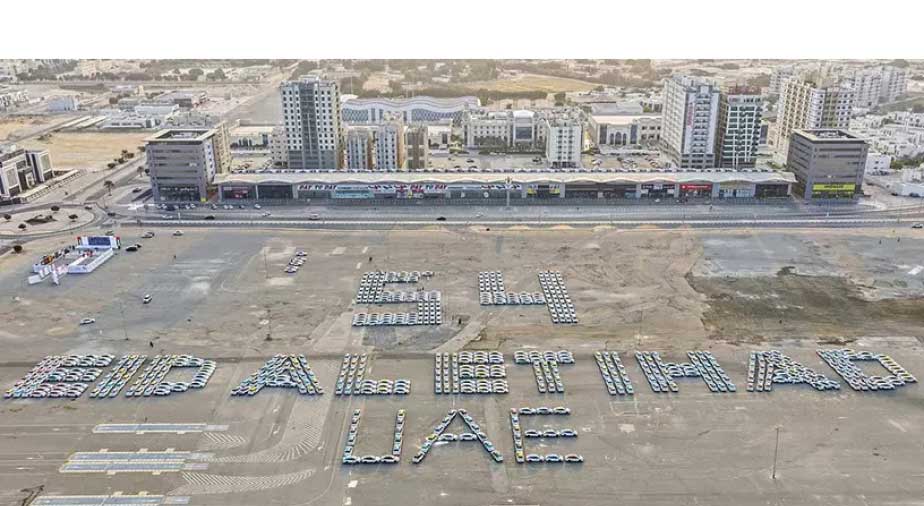 Ajman Emirligi awtoulaglardan iň uly baýramçylyk jümlesini döredip, täze dünýä rekordyny goýdy. Olar 603 awtoulagy ulanyp, Birleşen Arap Emirlikleriniň Milli gününiň 54 ýyllygyny bellemek üçin “54 EID AL ETIHAD UAE” diýip ýazdylar.