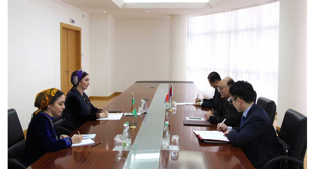 13 декабря состоялась встреча заместителя министра иностранных дел Туркменистана Мяхри Бяшимовой с Чрезвычайным и Полномочным Послом Корейской Народно-Демократической Республики (КНДР) Российской Федерации Син Хон Чхолем, прибывшим в Ашхабад для участия в мероприятиях по случаю 30-летия нейтралитета Туркменистана и Международного дня нейтралитета.
