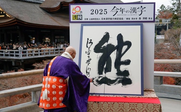 Japan has chosen the kanji for the year 2025. It is “kuma” (“bear”). The ceremony took place at the Temple of Pure Water in Kyoto, the country’s ancient capital. The temple’s abbot inscribed the kanji on rice paper. The ceremony was broadcast on Japan Television.
