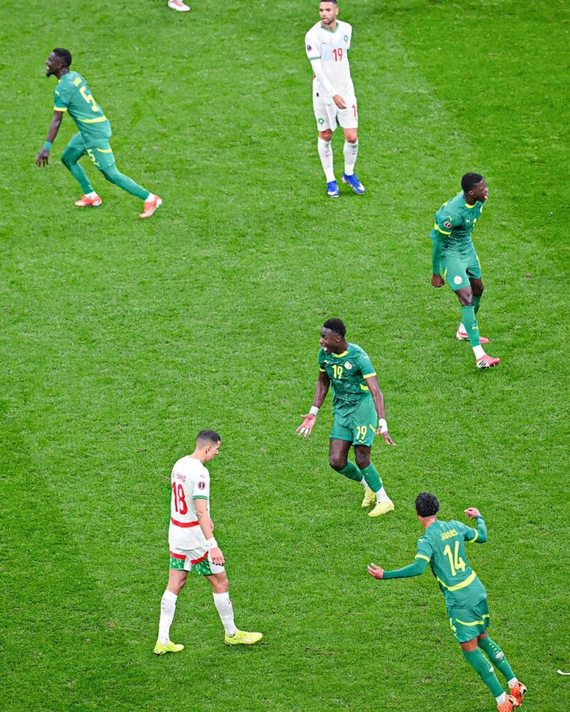 90+8-nji minutda bolsa emin VAR-e hem seredip, Marokkonyň peýdasyna 11 metrlik jerime urgusyny belledi. Bu ýagdaýa gahar eden senegally futbolçylar 90+13-nji minutda meýdançany terk etdiler. Geçirilen gepleşiklerden soň senegally futbolçylar 90+21-nji minutda meýdança dolanyp geldiler. Eminiň bellän 11 metrlik jerime urgusyny 90+24-nji minutda Marokkonyň finala çenli gelmeginde uly rol oýnan Brahim Diaz ýerine ýetirdi. Ol Panenka urgusyny deňäp gördi, ýöne gowşak bolan urguny derwezeçi Mendi ýeňillik bilen saklady. Şunlukda, soňky minutlary gopgunly geçen duşuşygyň esasy wagtynda hasap açylmady.