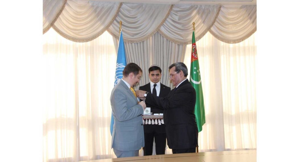 Ýokary döwlet sylaglaryna Birleşen Milletler Guramasynyň Türkmenistandaky hemişelik utgaşdyryjysy Dmitriý Şlapaçenko we Birleşen Milletler Guramasynyň Ösüş maksatnamasynyň Türkmenistandaky hemişelik wekili Narine Saakýan mynasyp boldular.