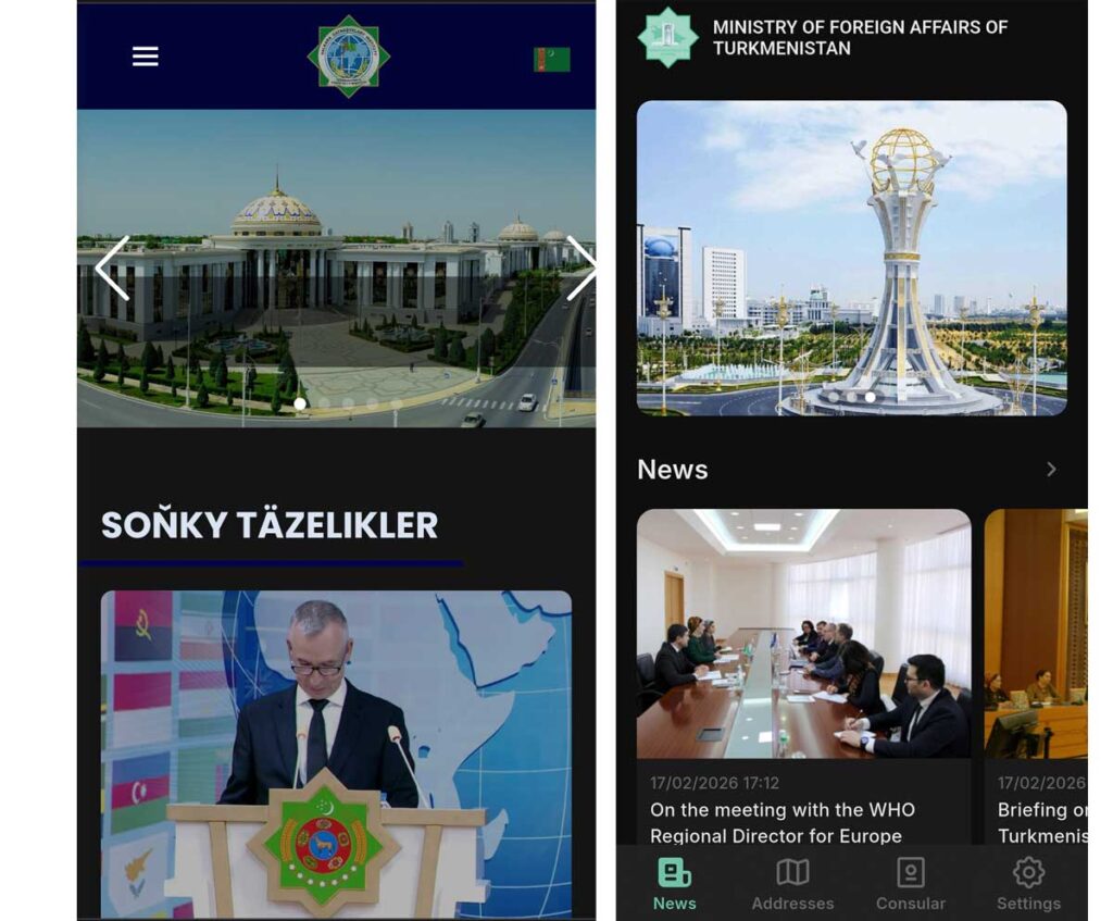 Türkmenistanyň Daşary işler ministrligi tarapyndan smartfonlar üçin goşundysy işe girizildi. Goşundy ulanyjylara gündelik täzelikler, Türkmenistanyň Daşary işler ministrligiň we onuň ulgamyna girýän edaralaryň, ilkinji nobatda, Türkmenistanyň daşary ýurtlardaky diplomatik wekilhanalarynyň, konsullyk edaralarynyň we halkara guramalarynyň ýanyndaky hemişelik wekilhanalaryň işi barada maglumatlar bilen tanyşmaga hem-de ýerli ulanyjylara konsullyk hyzmatlaryndan peýdalanmak üçin onlaýn nobata durmak mümkinçiligini hödürleýär.