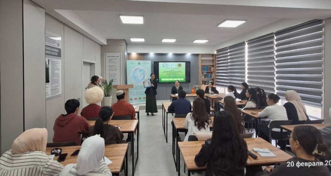 «Garaşsyz, baky Bitarap Türkmenistan—bedew batly at-myradyň mekany» diýlip yglan edilmegi we Türkmenistanyň Garaşsyzlygynyň 35 ýyllygy mynasybetli 2026-njy ýylyň 20-nji fewralynda Türkmenistanyň Gyrgyz Respublikasyndaky Ilçihanasy J.Balasagyn adyndaky Gyrgyz Milli Uniwersitetinde bilim leksiýasyny geçirdi.
