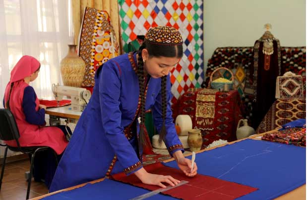 Также было отмечено, что студенты академии обучаются воспроизведению исконно национальных орнаментов на домотканой ткани «кетени», геометрической гармонии, колористике и национальным традициям при проектировании и пошиве костюмов. Дизайнерские решения студентов, сочетающие традиции и современность, отличаются оригинальностью и свежим взглядом.