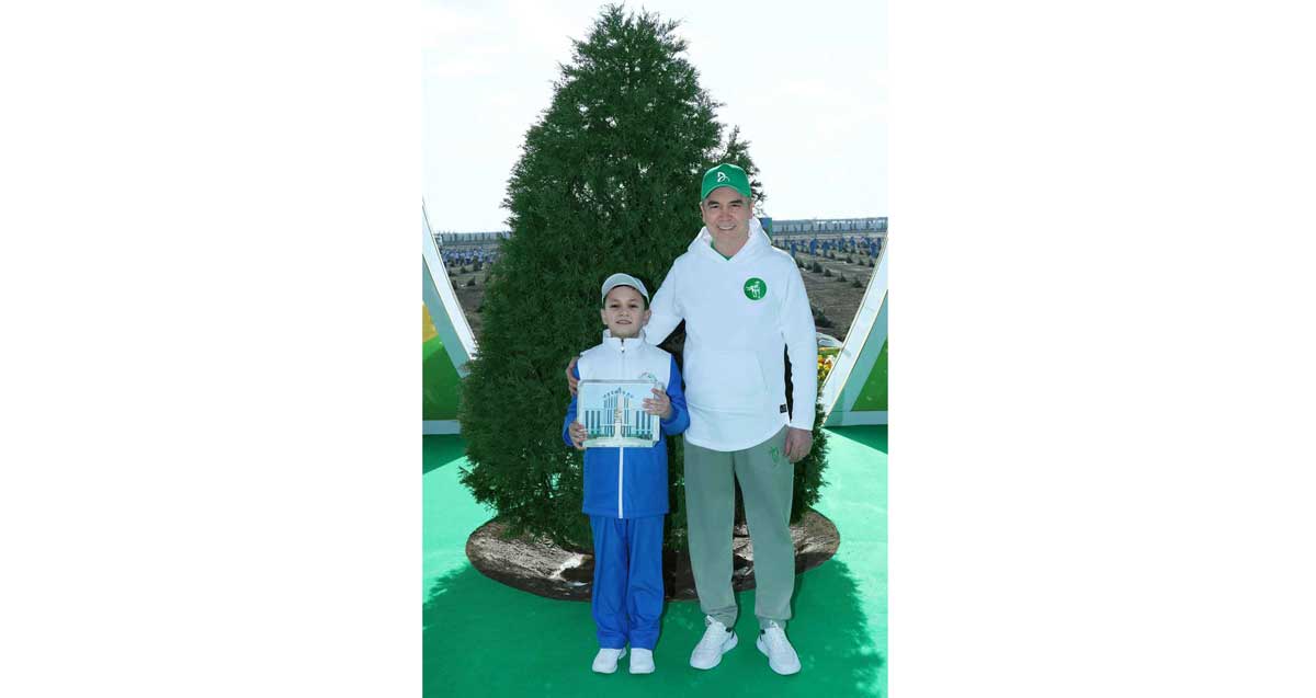 Oglanjyk Milli Liderimizden özi bilen ýadygärlik surata düşmegini haýyş etdi. Hormatly Arkadagymyz oglanjygyň haýyşyny kanagatlandyryp, onuň bilen ýadygärlik surata düşdi we körpe nesilleriň alýan bilimi, oglanjygyň höwes edýän hünäri bilen gyzyklandy. Oglanjyk okuwyndan daşary, çeper döredijilik bilen meşgullanmaga, sanly ulgamyň täzeçil usullaryny özleşdirmäge höwes edýändigi barada gürrüň berdi.