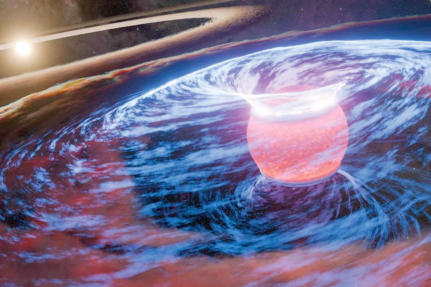 Astronomlar kosmos giňişliginde bir ýyldyzyň töwereginde iki sany äpet gaz planetasynyň emele gelşini anykladylar. Bu hadysa täze planetanyň emele gelýändigini görkezýär. «WISPIT 2» atly planetany öwrenýän alymlar gazdan we tozandan emele gelen aýlanýan buludyň içinde bir wagtda iki äpet planetanyň döreýşine syn etdiler. Bu açyş Gün ulgamy bilen bir hatarda planeta ulgamlarynyň nähili emele gelýändigi baradaky iň anyk we gönüden-göni syn ediş hasaplanýar.