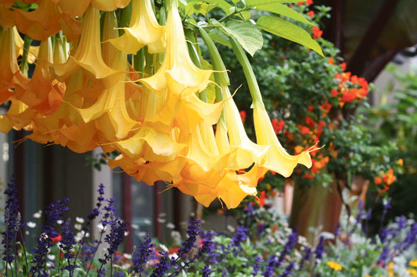 Brug­man­si­ýa. Jaň­ja­gaz şe­kil­li sa­ry gül­le­ri bo­lan bu ösüm­lik owa­dan­ly­gy bi­len ün­si özü­ne çek­ýär. Tro­pik hä­si­ýe­te eýe bo­lan bu gü­li köp­ler uzyn sur­na­ýa meň­zed­ýär­ler. Bu gülüň kä­bir gör­nü­şi­niň zä­her­li­di­gi se­bäp­li öý­de ýa-da how­lu­da ek­mek mas­la­hat be­ril­me­ýär.
