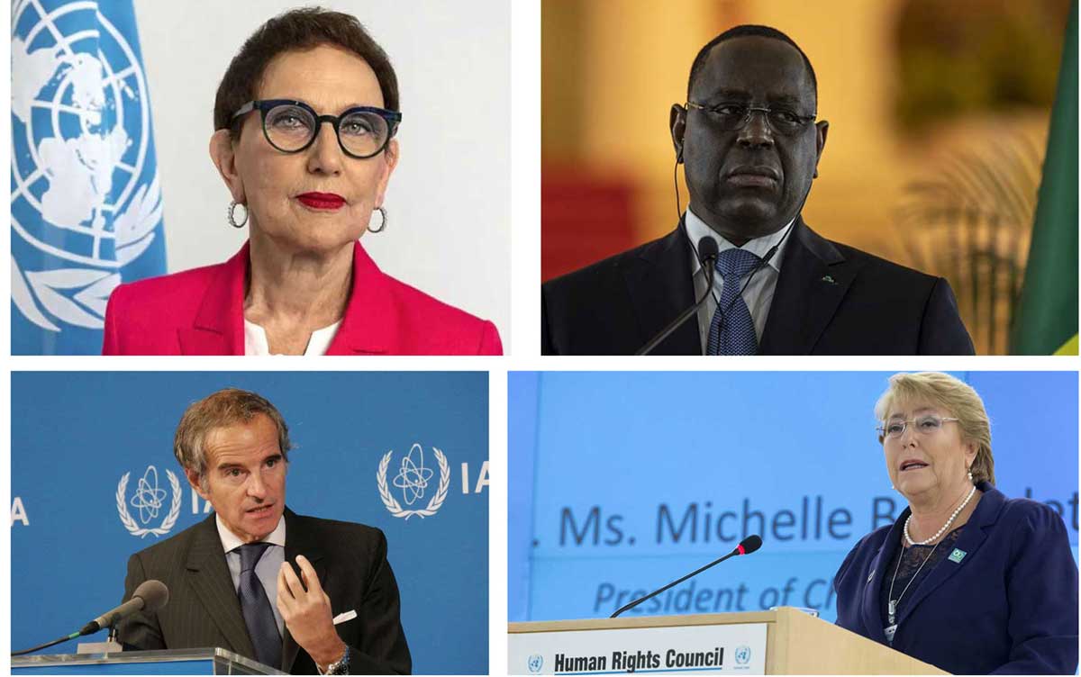 1-nji dalaşgär: Çiliden bolan 74 ýaşly Mişel Baçelet – Çiliniň ilkinji zenan döwlet Baştutany. Baçeletiň Birleşen Milletler Guramasynyň işinde hem uly tejribesi bar. Ol ozal BMG-niň Adam hukuklary boýunça Ýokary komissary wezipesinde işledi we «BMG-zenan» atly aýal-gyzlaryň hukuklaryny goraýjy gurama ýolbaşçylyk etdi. Baçeletiň dalaşgärligi Braziliýa we Meksika tarapyndan öňe sürüldi.