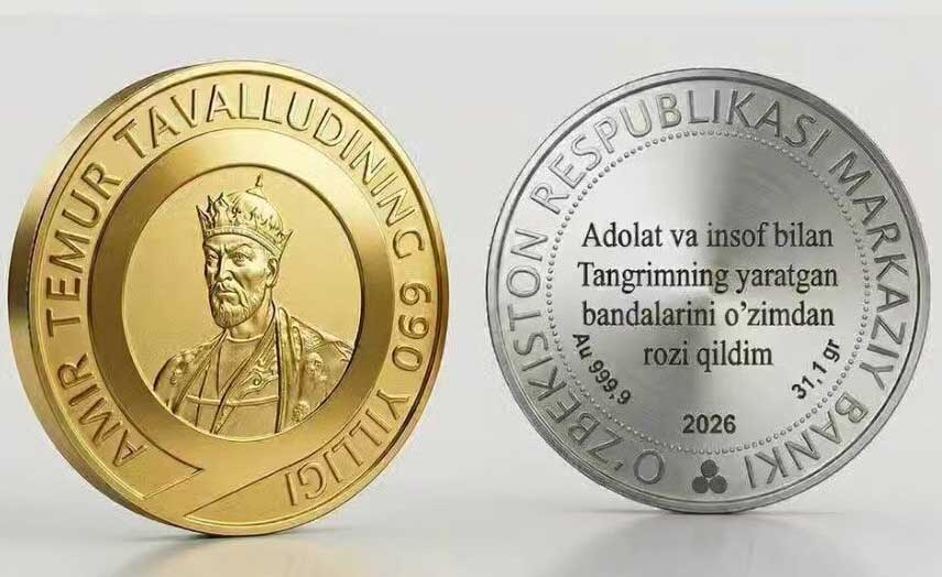 Özbegistanyň Merkezi banky Emir Teýmiriň 690 ýyllygy mynasybetli 999,9 probaly altyn we kümüş ýadygärlik pullaryny dolanşyga goýberdi. Agramy 31,1 gram bolan altyn şaýylyklaryň bahasy 61,4 million sum, kümüş pullaryňky bolsa 1,9 million sum möçberinde bellenildi. Täze şaýylyklar aýratynlykda we sowgatlyk toplumlary görnüşinde satuwa çykaryldy.