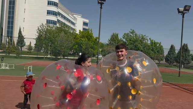 Программа включала разминку, традиционную игру «лянга», перетягивание каната и динамичные игры с надувными шарами. Участники активно поддерживали друг друга, создавая атмосферу единства и взаимопомощи.