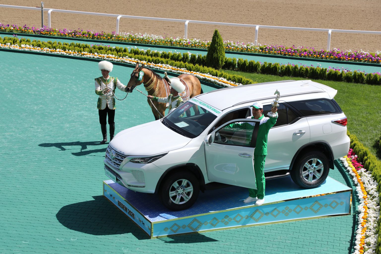 Soňra ahalteke bedewleriniň arasynda “Ýylyň iň owadan ahalteke bedewi” adyny almak ugrunda geçirilen halkara gözellik bäsleşiginiň ýeňijisi yglan edildi. Halkara gözellik bäsleşiginiň ýeňijisi bolan atyň eýesine hormatly Prezidentimiz Serdar Berdimuhamedowyň baş baýragy – “Toyota Fortune” kysymly ýeňil awtoulagyň açary, göçme kubok hem-de diplom gowşuryldy.