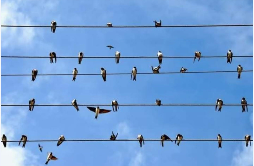 Guşlaryň gonýan simleriniň topraga birigýän ýeri ýok. Olar elektrik togunyň yzyna dolanmagy üçin gysga ýoly emele getirmeýärler. Elektrik energiýasy olaryň bedenine geçmän, has az garşylyk görkezýän olaryň iki aýagynyň arasyndaky simden geçip gidýär. Şol sebäpli erkana uçup ýören guşlar günüň islendik wagtynda simleriň üstüne gonup bilýär. Başga söz bilen aýdylanda, guşlar diňe bir sime gonýarlar (“-” ýa-da “+”). Eger olar her aýagyny bir sime degirseler olary bada-bat tok urardy. Sebäbi şeýle ýagdaýda onuň üstünden elektrik akymy geçýär.