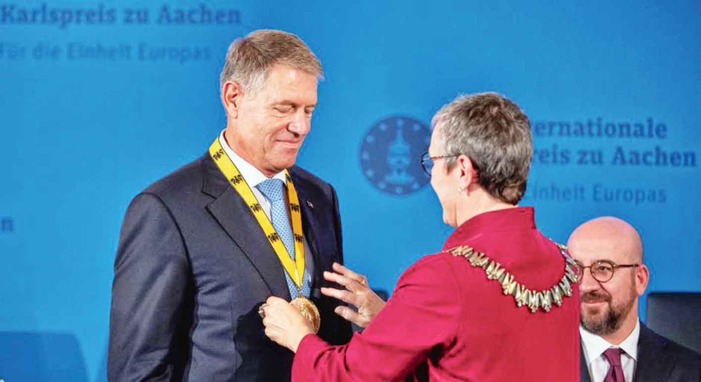 Rumyniýanyň Prezidenti Klaus Ýohannis Ýewropadaky gymmatlyklaryň, agzybirligiň, birek-biregi ykrar etmegiň we barlyşygyň ajaýyp nusgasyny görkezen syýasatçy hökmünde Beýik Karl adyndaky Halkara baýragy bilen sylaglandy. Germaniýanyň Ahen şäherinde geçirilen baýrak gowşurylyş dabarasyna Ýewropa Geňeşiniň başlygy Çarlz Mişel gatnaşdy.