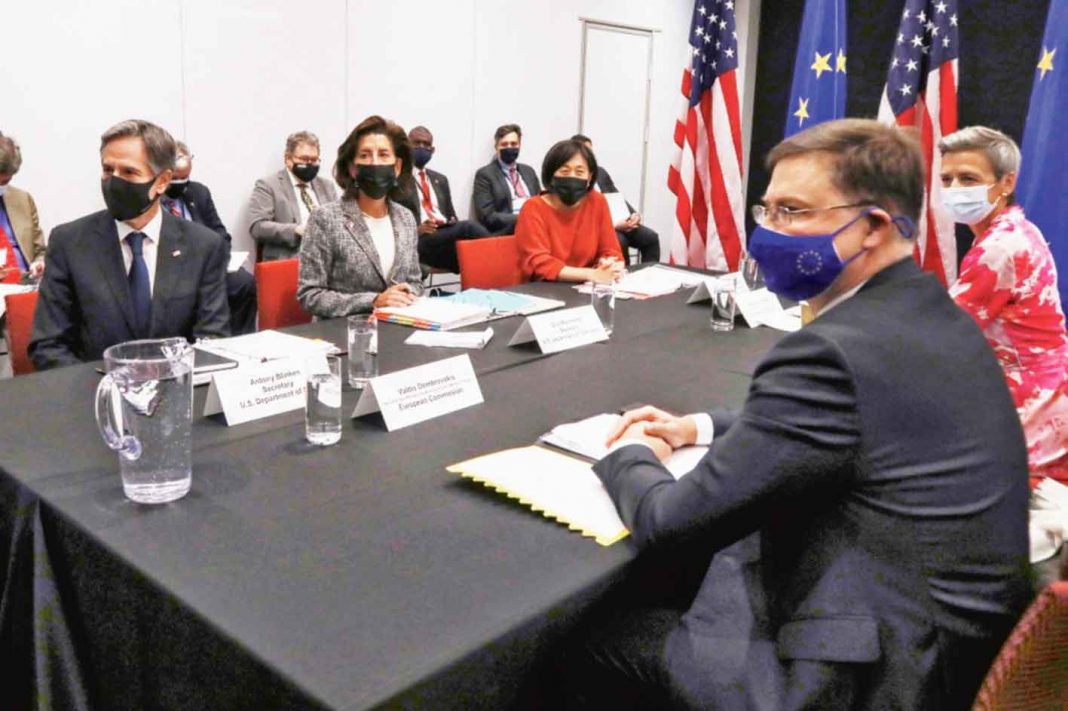 Amerikanyň Birleşen Ştatlary we Ýewropa Bileleşigi ýarymgeçiriji önümçiligini we üpjünçilik zynjyrlaryny güýçlendirmek, beýleki ýurtlar tarapyndan bazar däl söwda amallaryny çäklendirmek we iri global tehnologiýa kompaniýalaryny kadalaşdyrmaga giňişleýin çemeleşmek üçin transatlantik hyzmatdaşlygy giňeltmek barada ylalaşdylar.