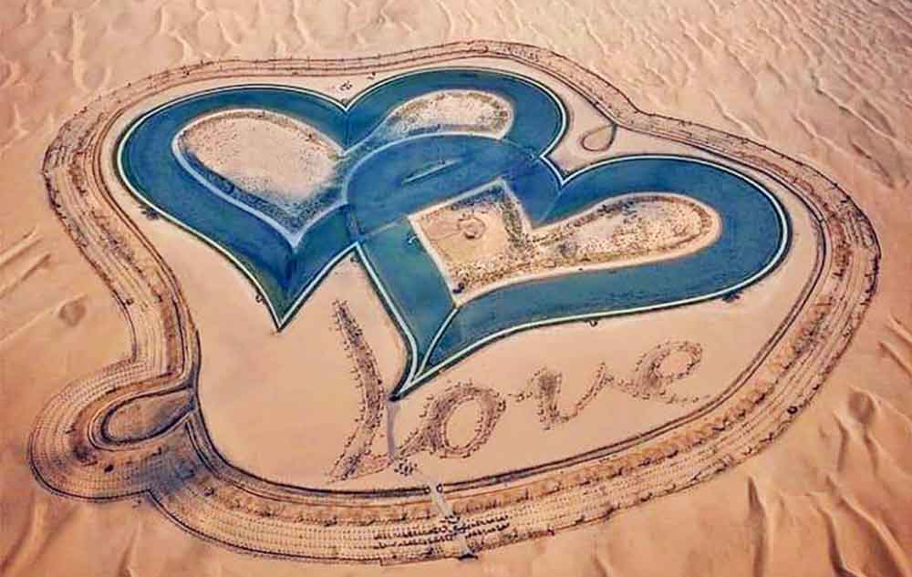 «EKSPO – 2020» Bütindünýä sergisiniň geçirilýän Birleşen Arap Emirlikleriniň Dubaý şäheri syýahatçylyk, işewürlik we beýleki ugurlarda dünýäniň öňdebaryjy şäherleriniň biri hasaplanýar. Häzire çenli şäherde daşary ýurtly myhmanlary özüne çekmek üçin dürli taslamalar durmuşa geçirildi. Şäher emeli derýajyklary, emeli adalarda gurlan myhmanhanalary, beýik binalary we iri söwda merkezleri bilen tanalýar. Çölüň jümmüşinde döredilen kenarýaka şäherde emeli köller hem bar. Şäheriň etegindäki goraghanada döredilen bu köller diňe syýahatçylary özüne çekmän, eýsem, tebigatyň aýawly saklanmagyna hem goşant goşýar. Bu ýerde esasy üç sany emeli köl bolup, olar «Al Kudra» diýlip atlandyrylýar. Bu kölleriň iň meşhuryna «Söýgi» köli diýilýär. Köl ýokardan seredeniňde, biri-biriniň içinden geçip duran iki sany ýüregiň şekilini emele getirýär. Emma köl uly bolansoň, ähli ýerini kenarynda durup görüp bolmaýar. Onuň içinde kiçeňräk adalar hem bar. Bu emeli köllerde we onuň töwereginde çöl jandarlary, balyklar we guşlaryň 175-den gowrak görnüşi ýaşaýar.