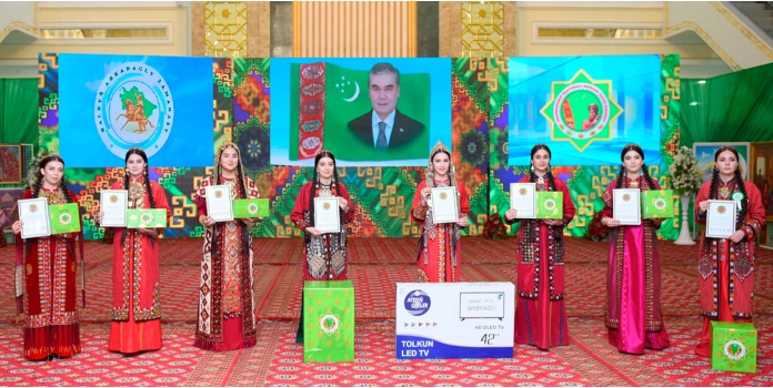 Bäsleşigiň ahyrynda ýeňijilere çäräni guranlaryň — Türkmenistanyň Magtymguly adyndaky ýaşlar guramasynyň Merkezi geňeşiniň, Türkmenistanyň Zenanlar birleşiginiň we ýurdumyzyň Bilim ministrliginiň adyndan gymmat bahaly sowgatlar we diplomlar gowşuryldy.