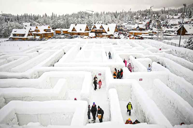 Polşanyň günortasyndaky Zakopane şäherinde dünýäniň iň uly gardan labirinti guruldy. Onuň içine girenler yzyna çykmak üçin birnäçe minutlap ýol gözlemeli bolýarlar. Bu adaty bolmadyk desga her ýyl gaýtadan gurulýar. Onuň gurluşygynda buz bölekleri we gar ulanylýar. Ilkinji gezek 2015-2016-njy ýyllaryň gyşynda gurlan labirint şondan bäri rekordy elden bermän gelýär. Ilkibaşda, 2 müň 500 metr meýdanda gurlan labirintiň çägi bu ýyl 3 müň metrden geçirildi. Ginnesiň Bütindünýä rekordlar kitabyna girizilen bu desga her ýyl gurlandan soňra şäheriň ýaşaýjylarynyň we myhmanlarynyň iň köp gelim-gidimli ýerine öwrülýär. Zakopane gyşky sport oýunlarynyň geçirilýän ýeri hökmünde dünýäde meşhur dynç alyş ýerleriň biri hasaplanýar.