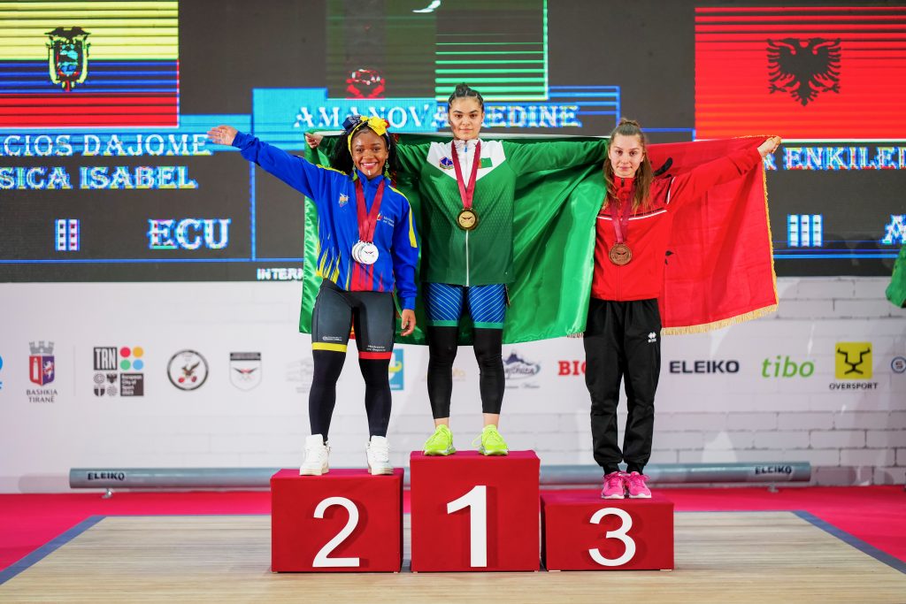 Albaniýanyň Durres şäherinde dowam edýän agyr atletika boýunça ýaşlaryň arasyndaky Dünýä çempionatynda türkmen türgenleri ýene bir altyn medal gazanmagy başardy. 59 kg agramda çykyş eden Medine Amanowa münberiň iň ýokary basgançagyna çykmagyň hötdesinden geldi. 16 ýaşly türgen gyzymyz birbada götermekde 90 kg agramy galdyryp, ekwadorly Jessika Palasiosdan hem-de albaniýaly Enkileda Karžadan öňe saýlandy. Itekläp götermekde-de 109 kg agramy galdyran Medine Amanowa ekwadorly türgenden bu ugurda-da 2 kg köp göterdi. Umumylykda 199 kg agramy galdyran Medine Amanowa 2-nji ýeri eýelän Palasiosdan 4 kg artyk görkeziji bilen altyn medala mynasyp boldy.
