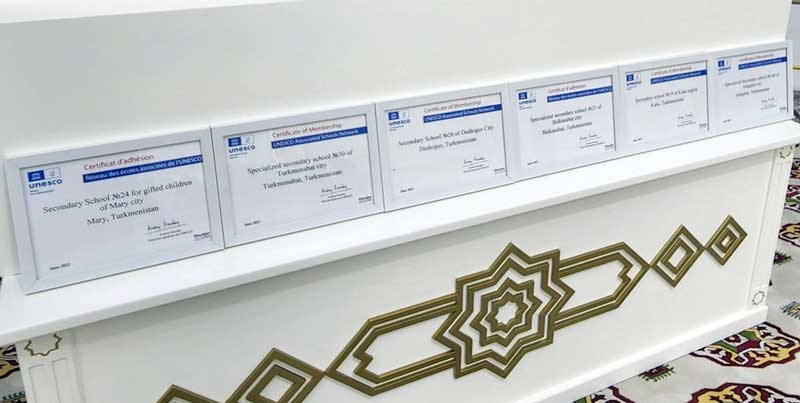 Arkadag şäheriniň bilim edaralarynyň açylyş dabaralarynyň çäklerinde ýurdumyzyň orta mekdepleriniň birnäçesiniň ÝUNESKO-nyň Assosirlenen mekdepler toruna girizilmegi mynasybetli Halkara şahadatnamalaryň gowşuryş dabarasy geçirildi.
