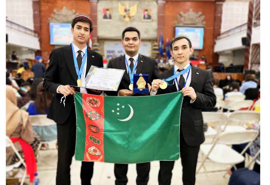 Золотых медалей и Кубка победителя удостоились учащиеся 3-го курса по специальности «Компьютерные технологии» Ахмет Акыев и Сапардурды Бердыев. Студенты выступали под руководством преподавателя кафедры МУГНиР «Современные компьютерные технологии» Мусы Язымова. На площадке престижного международного мероприятия команда вуза представила научный проект «От дефицита к устойчивому развитию: как технологии могут помочь в экономии воды, борьбе с засухой и изменением климата».
