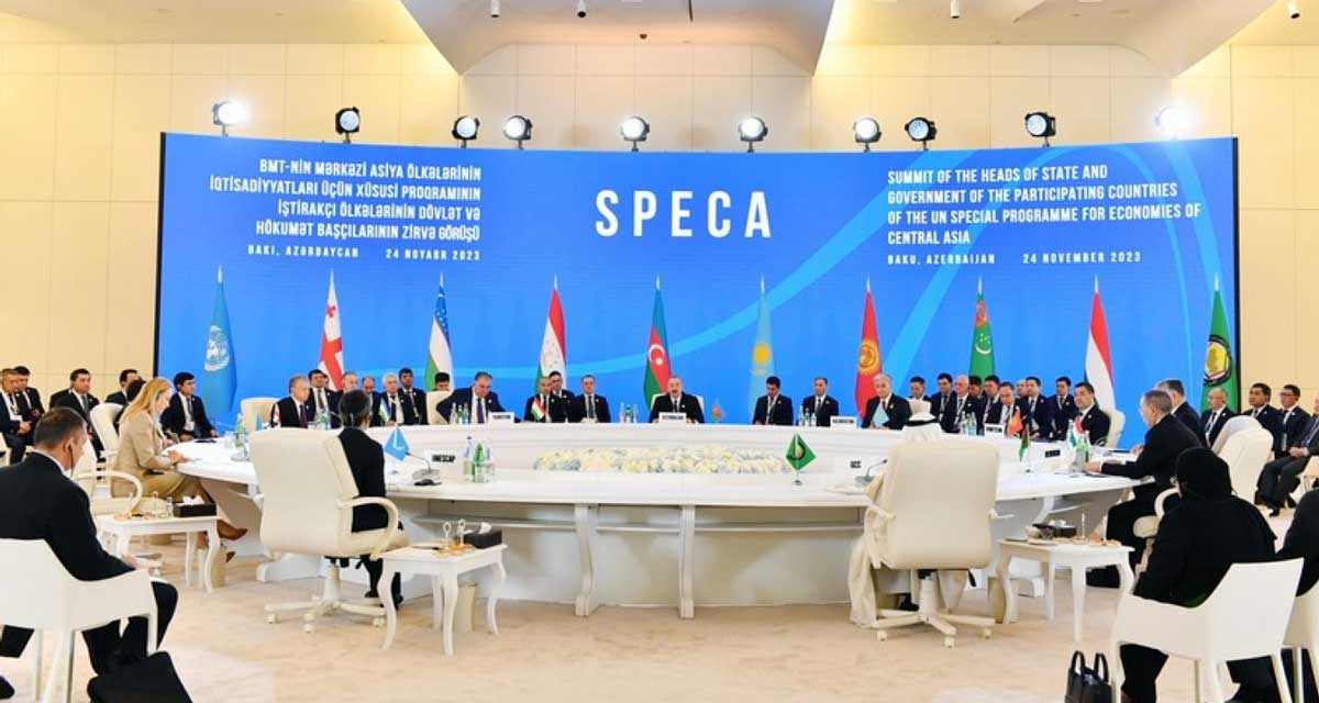 24 ноября в Баку состоялся первый Саммит глав государств и правительств государств-участников Специальной программы Организации Объединённых Наций для экономик Центральной Азии (СПЕКА), в котором приняла участие делегация Туркменистана под руководством Заместителя Председателя Кабинета Министров Туркменистана Х.Гельдымурадова.