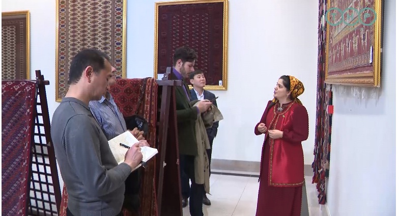 Журналисты воочию смогли познакомиться с искусством изготовления различных видов ковров, которое является важнейшим элементов национальной культуры туркменского народа. Сотрудниками музея им были представлены не только ковровые полотна, но и другие изделия связанные с ковроткачеством, с традиционным орнаментом и узорами.