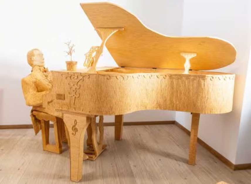 Неординарный Хорват использовал 210 000 спичек для создания скульптуры пианиста, играющего на рояле в натуральную величину, в комплекте со струнами из спичек. Не довольствуясь этим, 34-летний художник из северной деревни Домасинец находится всего в полутора годах от завершения гигантской скульптуры Давида Микеланджело в своей интерпретации.