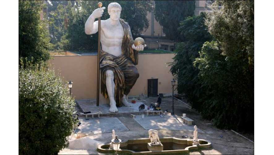 Точная реплика гигантской статуи древнеримского императора Константина (272-337) выставлена в садах Капитолийских музеев итальянской столицы. “Колосс” в натуральную величину высотой 13 м из резины, гипса, полиуретана, смешанных с мраморной крошкой и золотой фольгой был выполнен на основе подробных исследований оригинала IV века.