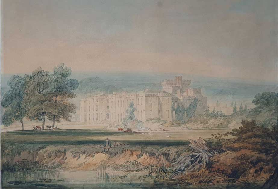 На картине, созданной в конце XVIII века, изображен расположенный неподалеку замок Хэмптон-Корт в Херефордшире. Ожидается, что работа размером 12,5 на 17 дюймов будет продана на аукционе за сумму от 30 000 до 50 000 фунтов стерлингов (от 38 000 до 63 000 долларов).