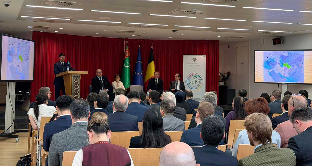Brýussel şäherinde «Yklymlary baglanyşdyryp: Türkmenistanyň ösýän üstaşyr-logistika mümkinçilikleri» atly mowzuklaýyn çäre geçirildi. Bu çäre Türkmenistanyň üstaşyr-logistika mümkinçiliklerini, şeýle hem onuň Ýewropa bilen Aziýanyň arasynda durnukly, öňünden çaklanyp bolýan we netijeli ulag arabaglanyşygynyň emele getirilmegine goşýan goşandyny ara alyp maslahatlaşmaga bagyşlandy. Bu barada Türkmenistanyň DIM-niň web-saýtynda habar berilýär.