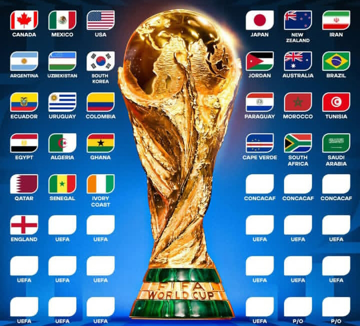 Geljek ýylyň tomsunda 3 ýurtda – Kanada, Meksika we ABŞ-da geçiriljek 23-nji FIFA Dünýä Kubogyna gatnaşjak 48 toparyň 28-si belli boldy. Olaryň 3-si ýer eýeleri bolup, galan 25 ýygyndy dowam edýän saýlama duşuşyklarynyň netijesinde hukuk gazanan toparlardyr. Oktýabr aýyndaky duşuşyklarda Afrika yklymynyň ähli topary-da belli bolup, ýene bir ýygyndynyň yklymlar arasy pleý-off oýunlaryndan soň sanawa goşulmagy mümkin. Aziýadan ýene-de 2 ýygyndy belli bolsa, Ýewropadan ilkinji topar bolmaklyk Angliýanyň ýygyndysynyň paýyna düşdi. Noýabr aýyndaky oýunlardan soň Ýewropadan 11 ýygyndy Angliýanyň hataryna goşular. Şol sanda Demirgazyk Amerikadan hem ýer eýelerinden daşgary ýene-de 3 ýygyndy final tapgyryna gatnaşar. Geljek ýylyň mart aýynda-da Ýewropadan ýene 4, şol sanda yklymlararasy pleý-off duşuşyklaryndan hem 2 ýygyndy Dünýä Kubogyna gatnaşmaga ýollanma alar.