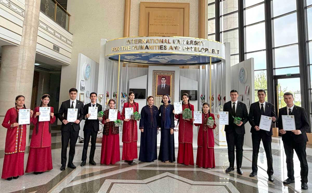 The first place in the competition was won by Leyli Durdiyeva, a 2nd year student of the Dovletmammet Azady Turkmen National Institute of World Languages, the second place by Aisha Atageldiyeva, a 2nd year student of the Magtymguly Turkmen State University, and Yelizaveta Rakhmanova, a 5th year student of the Turkmen State Institute of Physical Education and Sports, and the third place by Malika Rozmetova, a 4th year student of the Myrat Garryev Turkmen State Medical University, Dovlet Atayev, a 4th year student of the Institute of Telecommunications and Informatics, and Mahmut Gurbanov, a student of the Yagshygeldy Kakayev International Oil and Gas University.