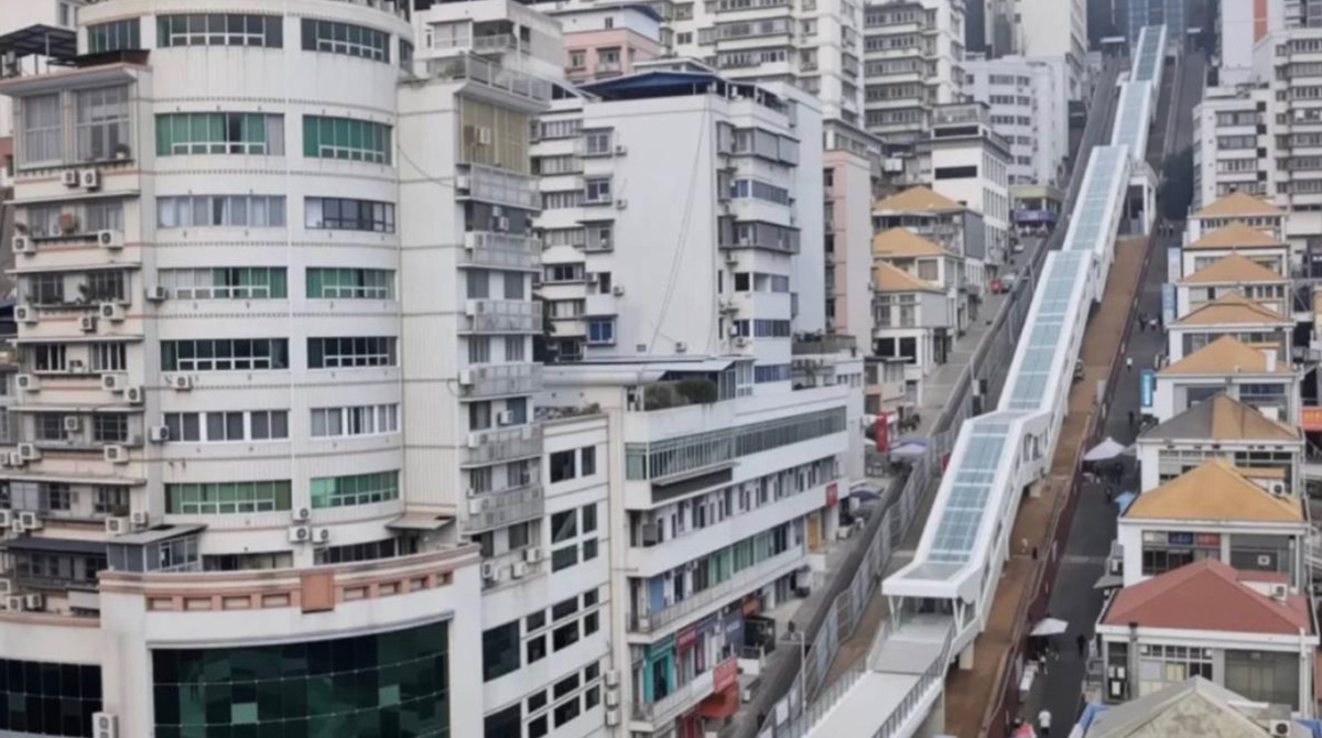 Bir hepde mundan ozal synag maksatly ulanyşyna berlen täze desga resmi taýdan «Uşan hudaýynyň eskalatory» diýlip atlandyrylýar. Ol 21 eskalatordan, 8 liftden, 4 trawolatordan, 2 pyýada köprüsinden we 2 estakadadan ybarat. Bularyň hemmesi şäheriň iki etrabynyň arasyndaky ýol wagtyny bir sagatdan ýigrimi minuta çenli azaltmak üçin niýetlenendir. Şeýle hem ulgam diňe pyýadalaryň wagtyny tygşytlamagyna däl, eýsem, olaryň ýöremeli wagtyny azaltmak bilen hem ýeňillik döredýär.
