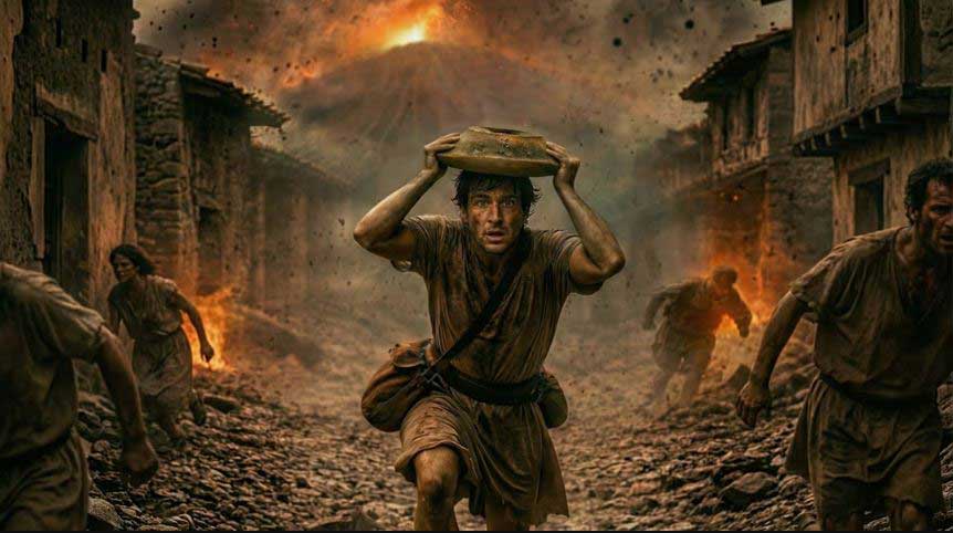 Italiýanyň Pompei şäherinde geçirilen täze arheologik gazuw-agtaryş işleri we emeli aň tehnologiýalary 79-njy ýylda Wezuwiý wulkanynyň pidalaryndan biriniň ömrüniň soňky pursatlaryny dikeltmäge mümkinçilik berdi. Porta Stabiýa gonamçylygynda tapylan bu adam, asmandan ýagýan gyzgyn daşlardan goranmak üçin kellesiniň üstünde toýun gaby gorag hökmünde tutup, soňky demini beripdir. Emeli aň algoritmleri gadymy ýazyjy Pliniý Kiçiniň taryhy maglumatlary we tapylan galyndylar esasynda bu adamyň durkuny hem-de şol pursatdaky psihologiýasyny ylmy taýdan takyk görnüşde janlandyrdy.
