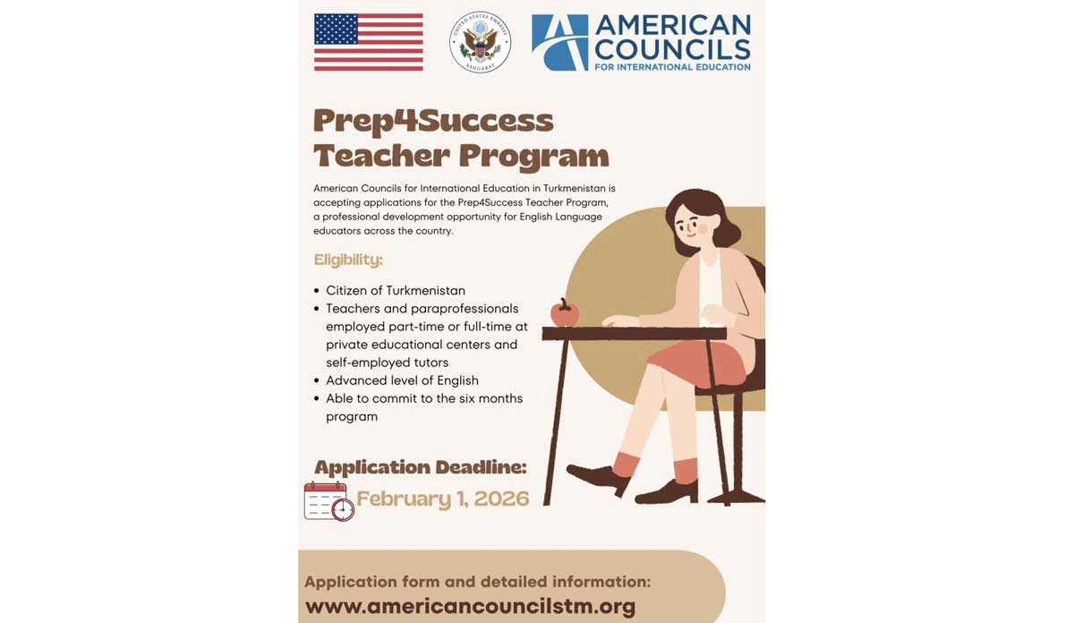 American Councils объявляет набор педагогов Туркменистана в шестимесячную программу профессионального развития Prep4Success, направленную на повышение качества преподавания и подготовки учащихся к академическим испытаниям.