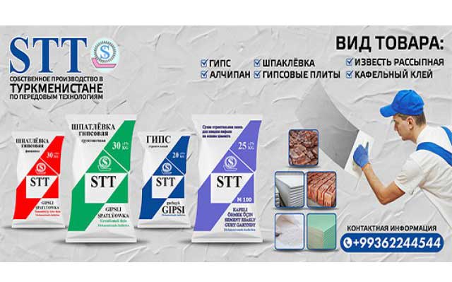 Компания, входящая в Союз промышленников и предпринимателей Туркменистана, выпускает железобетонные плиты, клеи, строительный и плиточный гипс, известь, сухие смеси, гипсокартон и техническую соль.